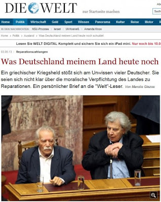 Tο συγκλονιστικό άρθρο του Μανώλη Γλέζου στη γερμανική εφημερίδα Die Welt, στο οποίο εξηγεί στους Γερμανούς αναγνώστες της εφημερίδας, γιατί είναι δίκαιο να καταβληθούν οι αποζημιώσεις που οφείλει το γερμανικό κράτος στην Ελλάδα αλλά και πώς αυτή η πράξη εξυπηρετεί «την Ευρώπη της αλληλεγγύης»: