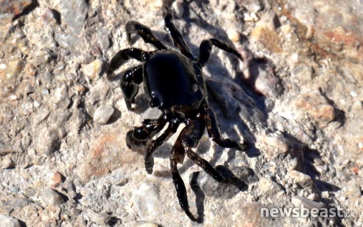 Φωτογραφίες / Bίντεο: Γιάννης ΚέμμοςΟ κάβουρας που εντοπίστηκε έχει αλλάξει χρώμα και έχει γίνει μαύρος.